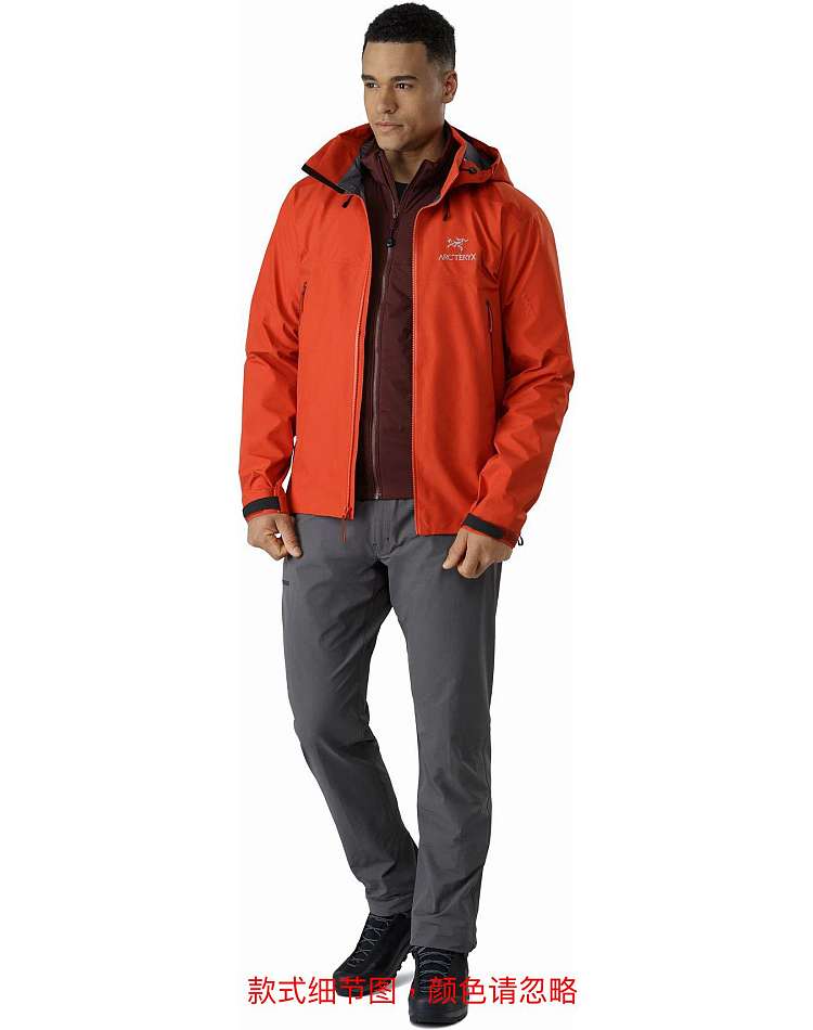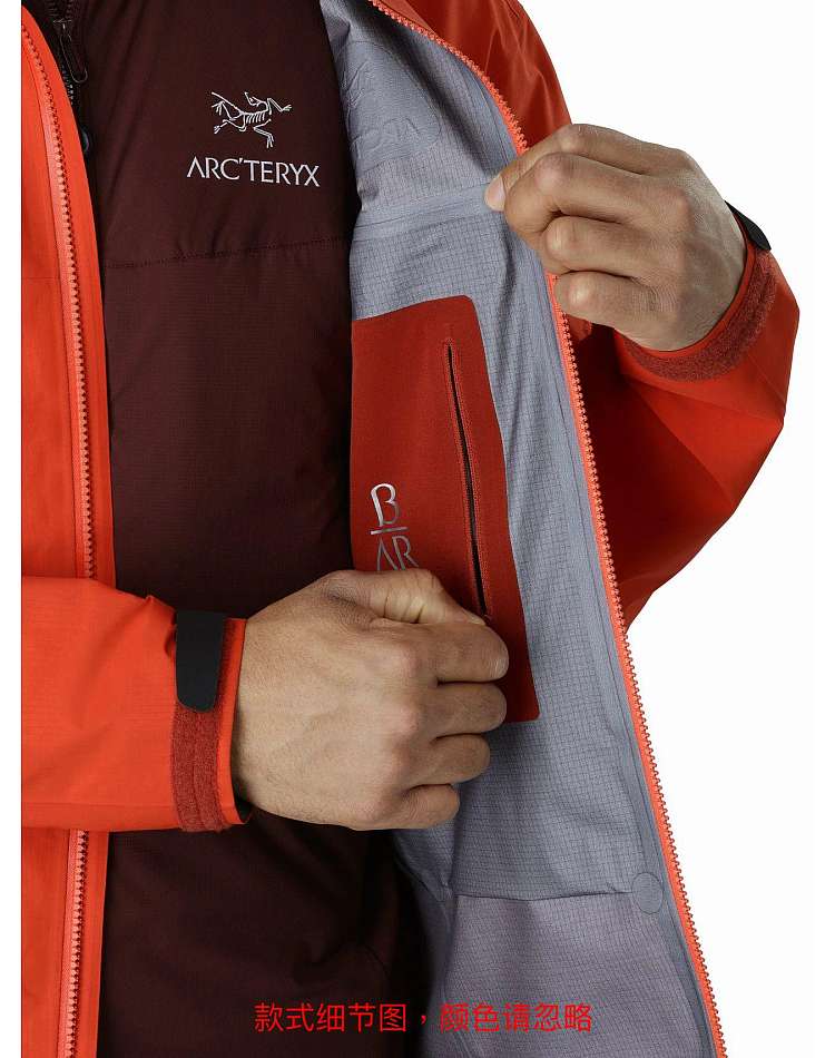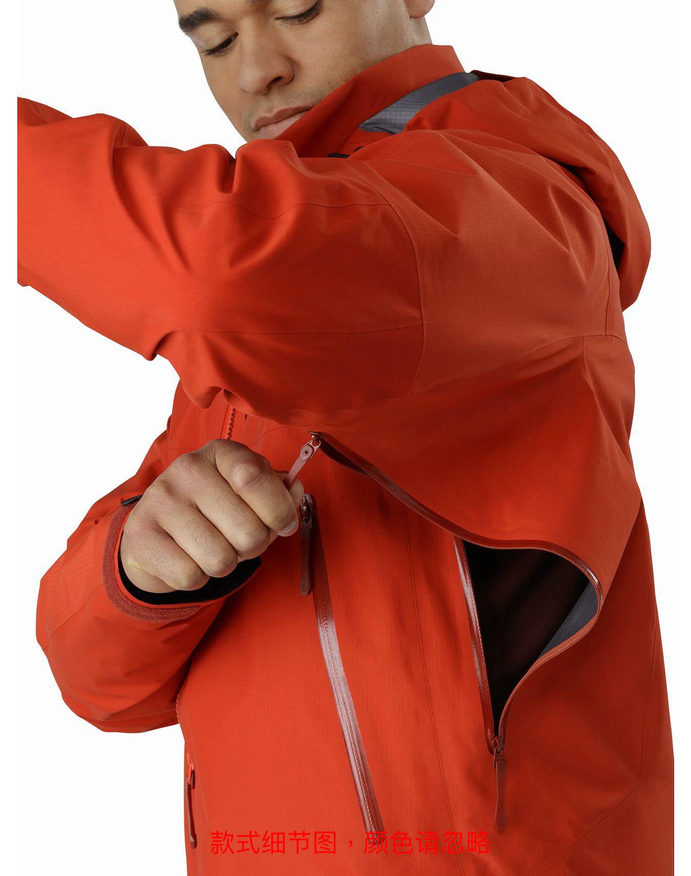 标准款式夹克,设有插手口袋和腋下拉链,改良后的长度可与其他衣物搭配穿着,兜帽带内侧衣领,夹克在暴风雨、攀岩、滑雪或其他户外活动中穿着舒适。