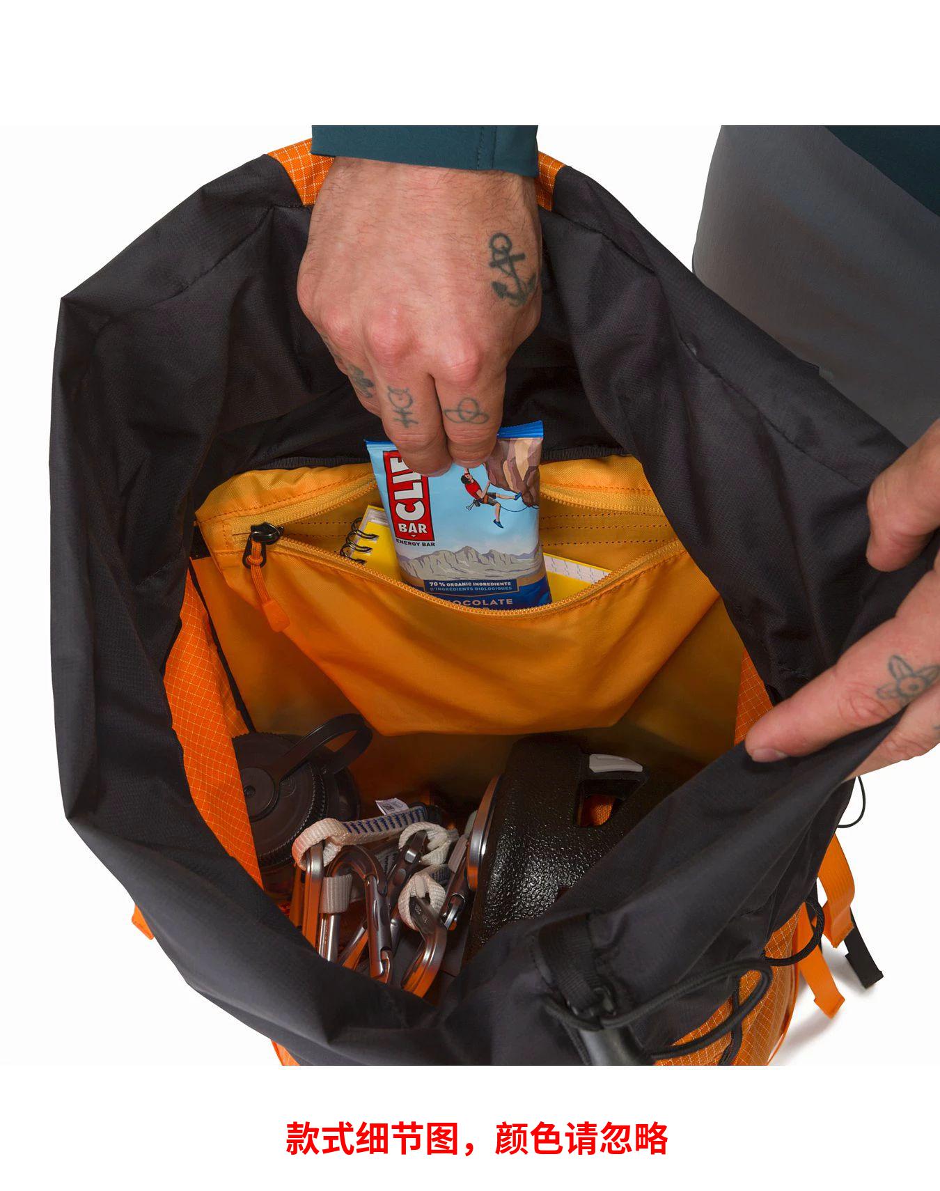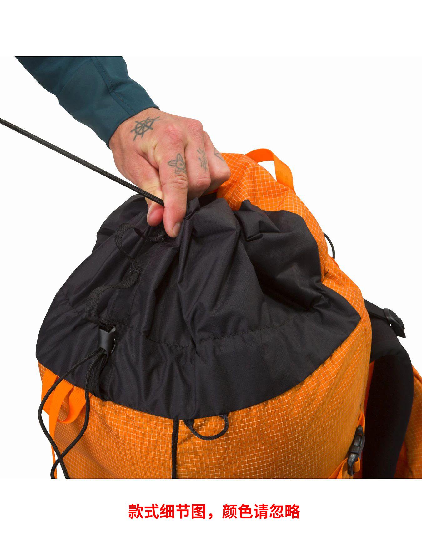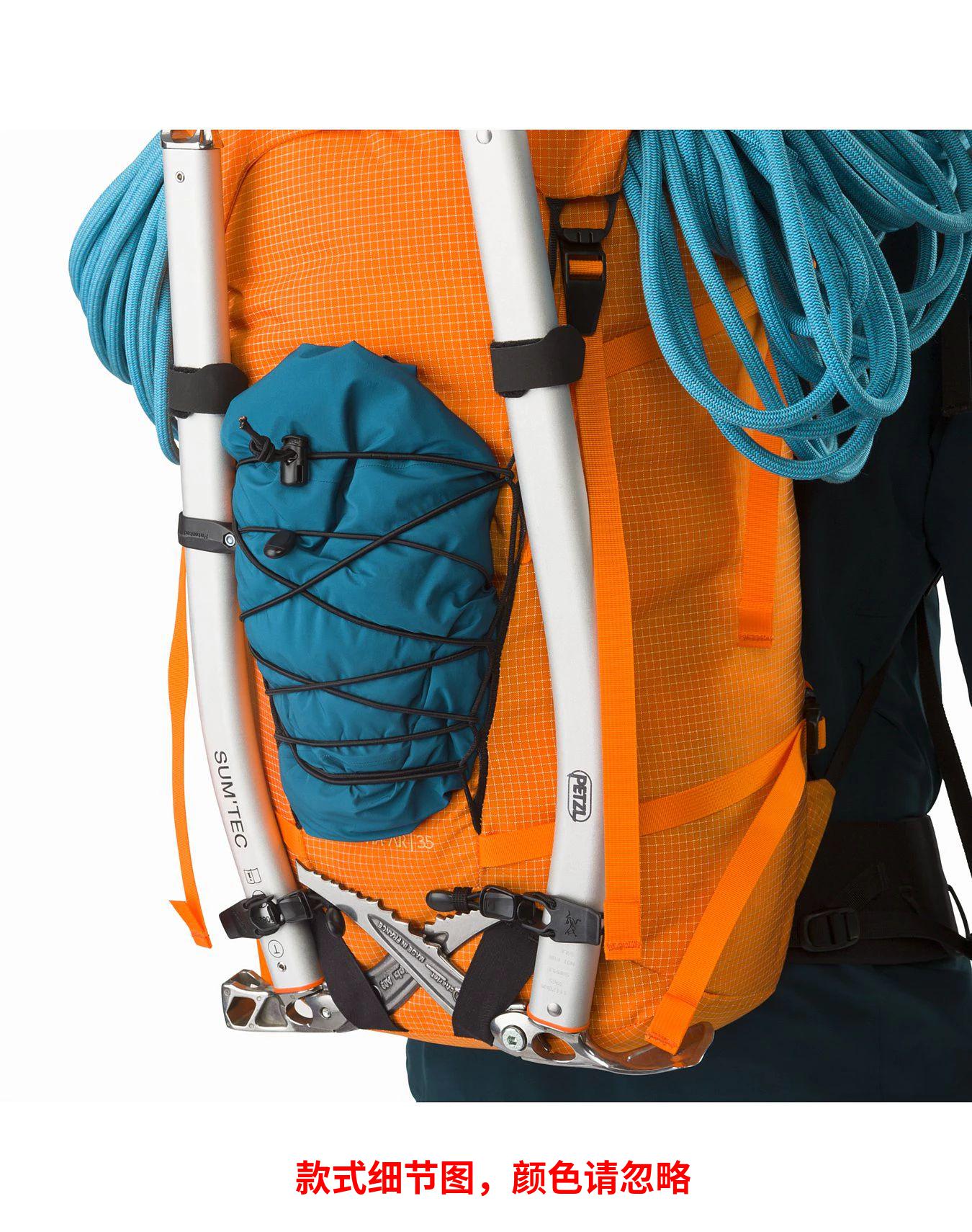 Alpha AR 35背包↵Arc'teryx开发了自己的面料,以达到登山和攀岩所必需的耐磨性、耐久性。