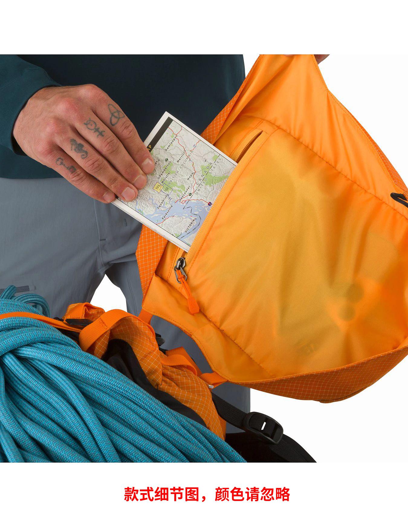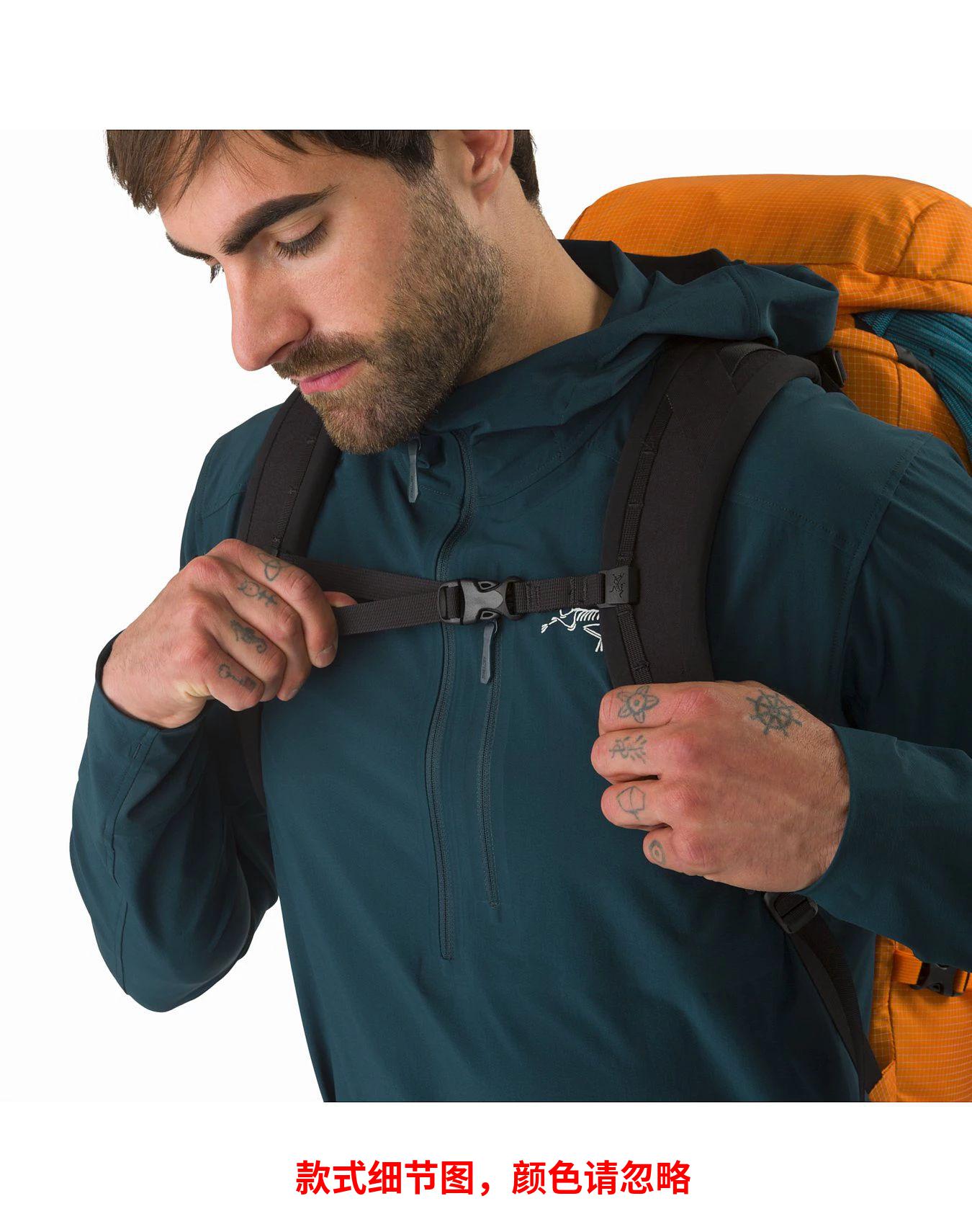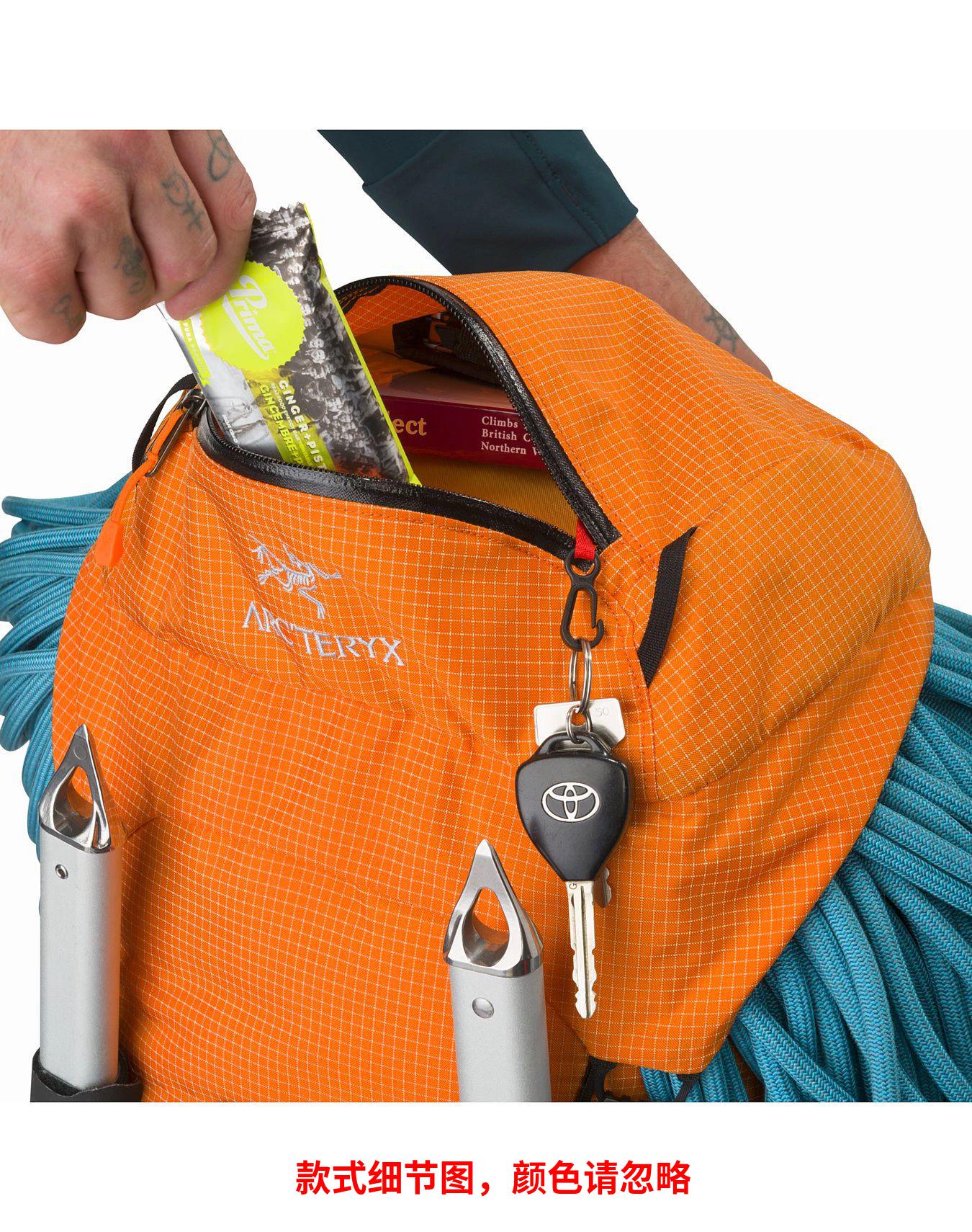 Alpha AR 35背包↵Arc'teryx开发了自己的面料,以达到登山和攀岩所必需的耐磨性、耐久性。