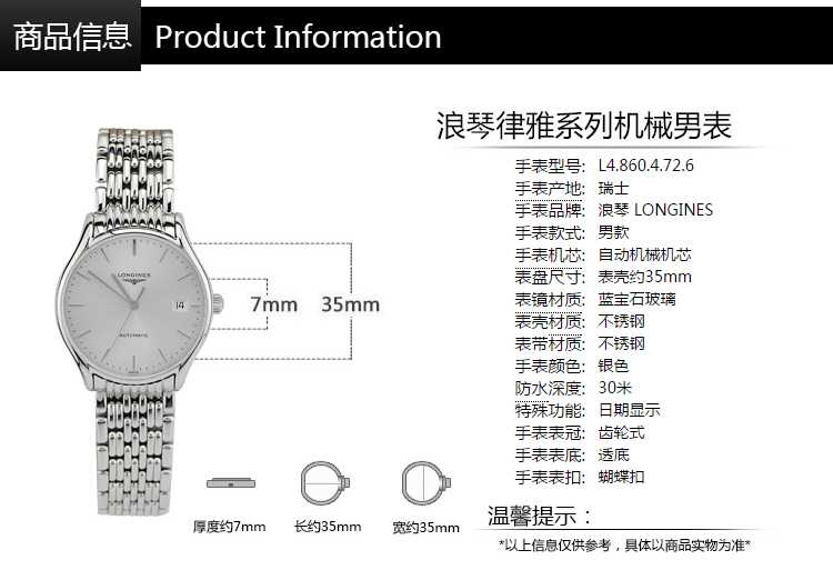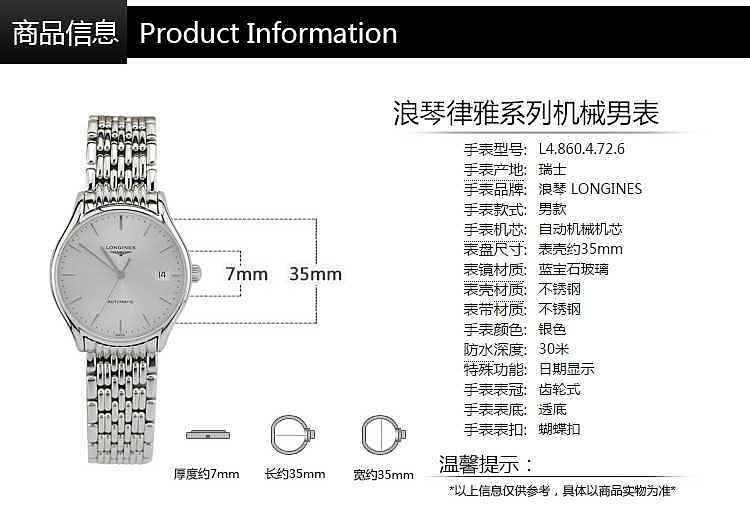【男表】浪琴(Longines)手表 律雅系列机械男表L4.860.4.72.6