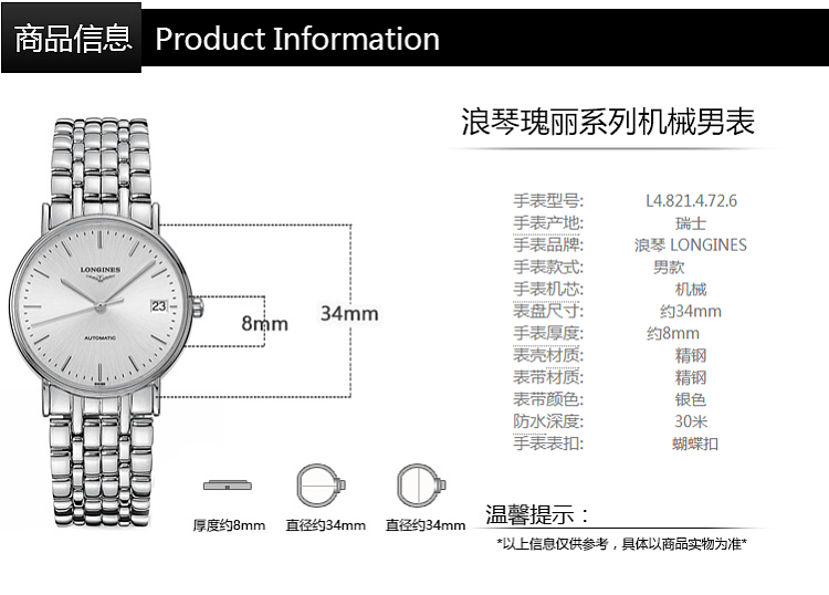 【男表】浪琴(Longines)手表 瑰丽系列机械情侣表男表L4.821.4.72.6