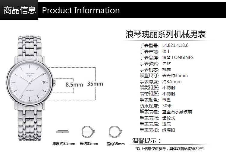 【男表】浪琴(Longines)手表 瑰丽系列机械情侣表男表L4.821.4.12.6