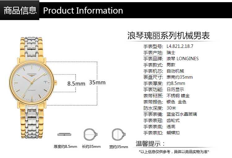 【男表】浪琴(Longines) 机械男表L4.821.2.12.7
