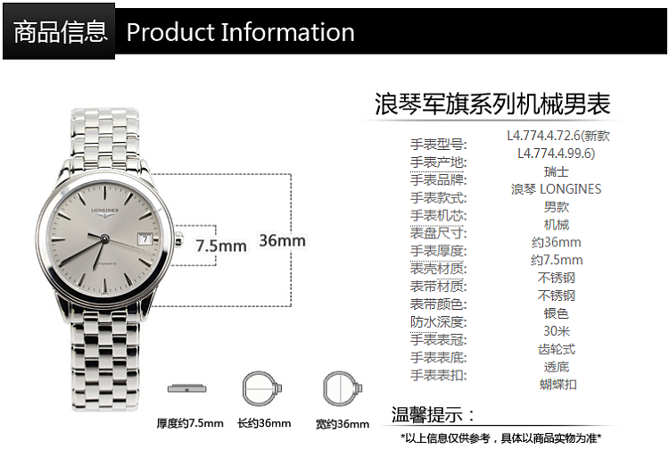 【男表】浪琴(Longines)手表 军旗系列机械情侣表男表L4.774.4.99.6