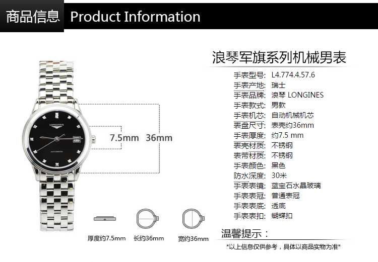 【男表】浪琴(Longines)手表 军旗系列机械情侣表男表L4.774.4.57.6