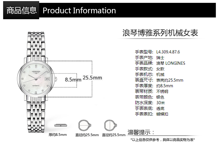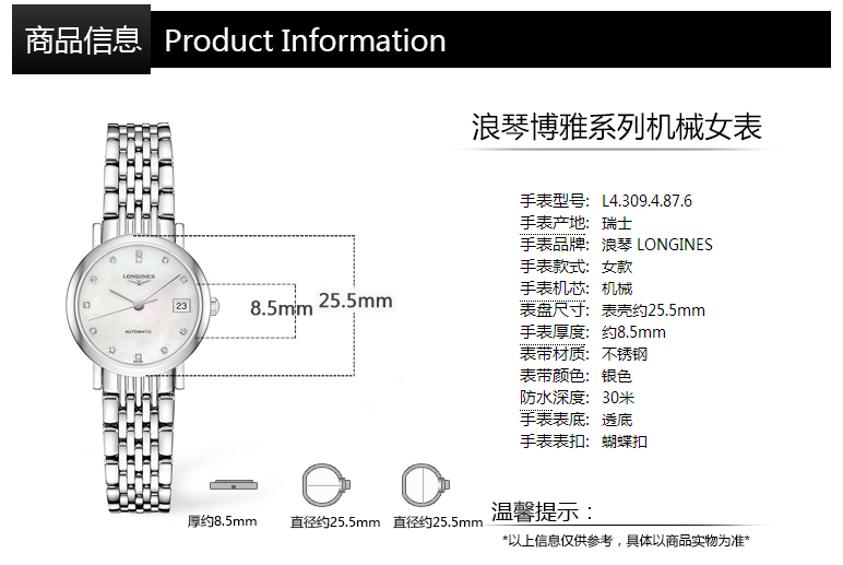 【女表】浪琴(Longines)手表 博雅系列机械女表L4.309.4.87.6
