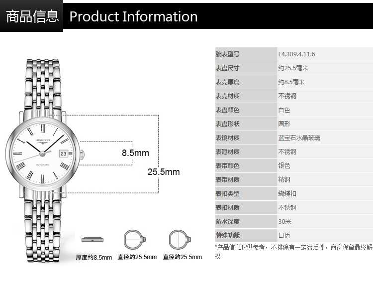 【女表】浪琴(Longines)手表 博雅系列机械女表L4.309.4.11.6