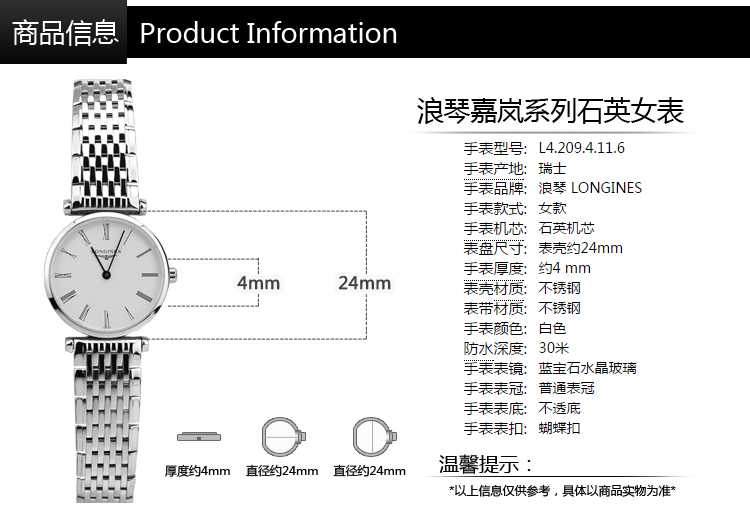 【女表】浪琴(Longines)手表 嘉岚系列时尚情侣表女表L4.209.4.11.6