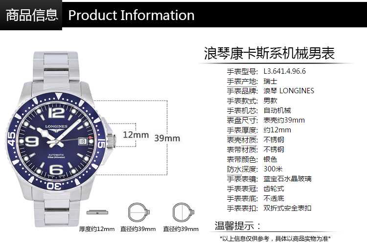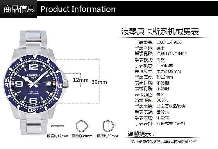 【男表】浪琴(Longines)康卡斯系机械男士手表L3.641.4.96.6