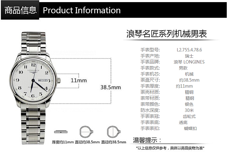 【男表】浪琴MASTER COLLECTION名匠系列L2.755.4.78.6腕表