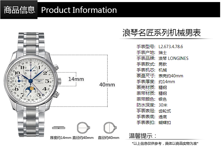 【男表】浪琴MASTER COLLECTION名匠系列L2.673.4.78.6腕表