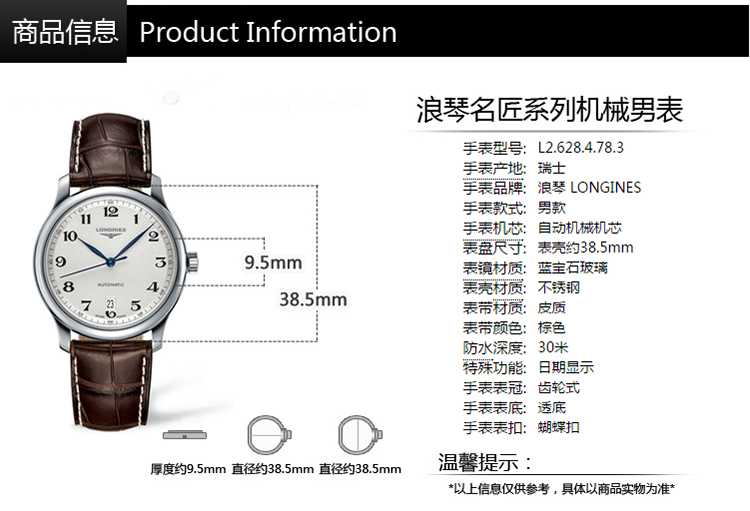 【男表】浪琴(Longines)手表 名匠系列机械情侣表男表L2.628.4.78.3