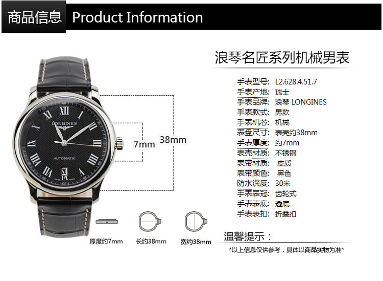 【男表】浪琴MASTER COLLECTION名匠系列L2.628.4.51.7腕表