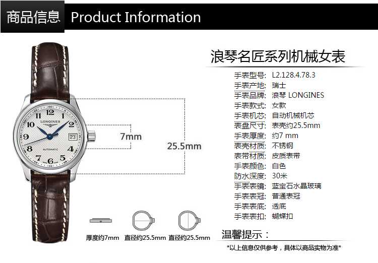 【女表】浪琴(Longines)手表 名匠系列机械女表L2.128.4.78.3
