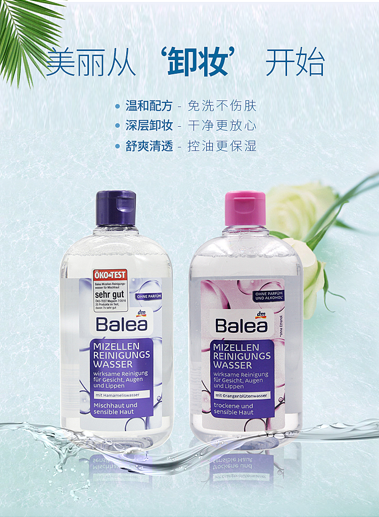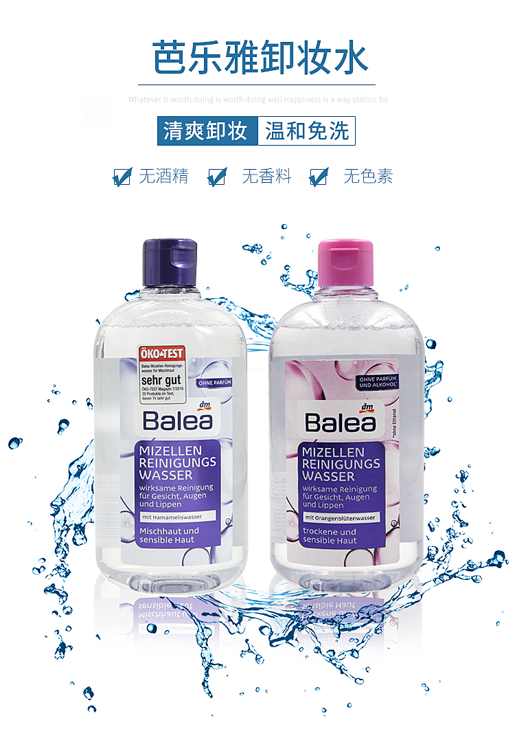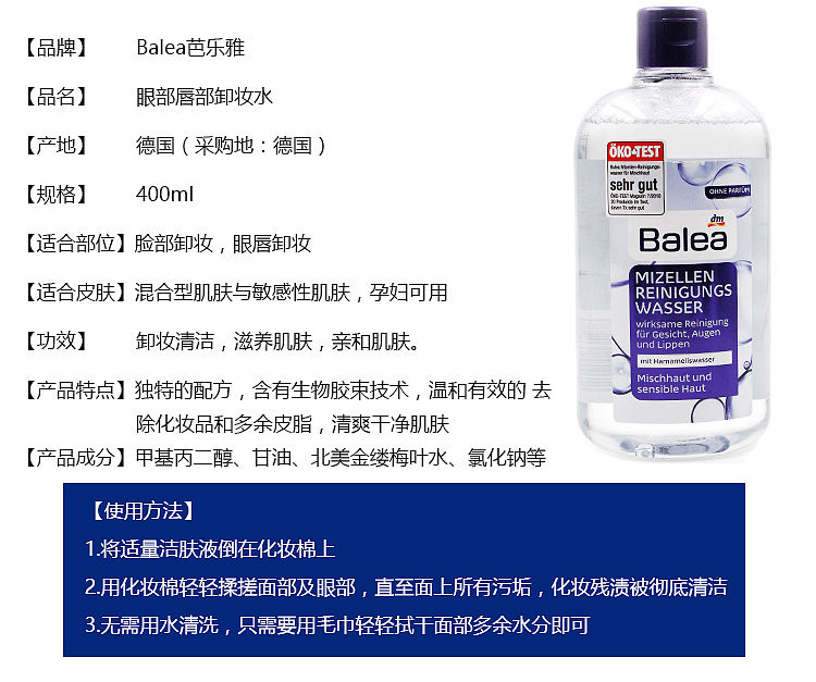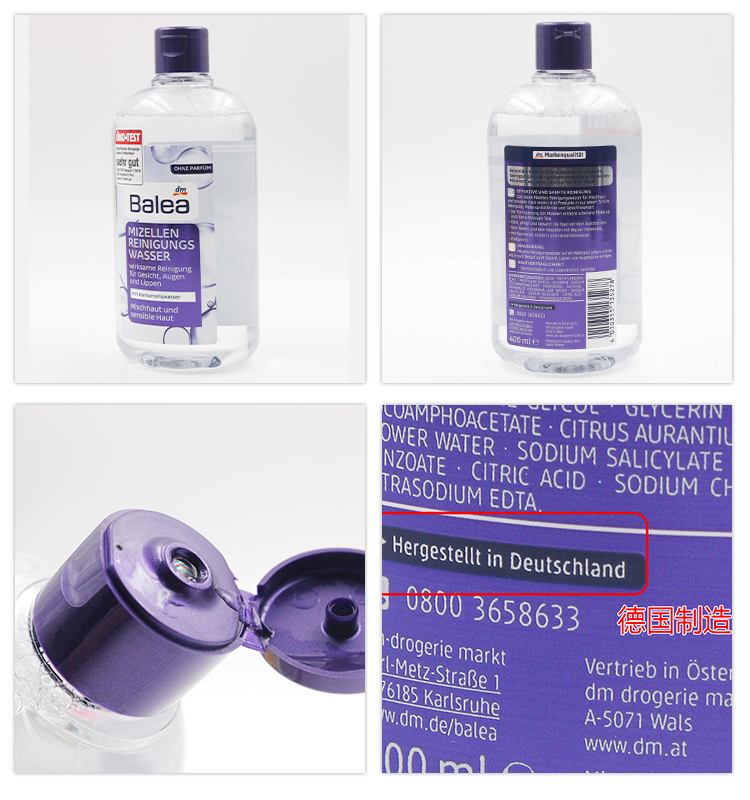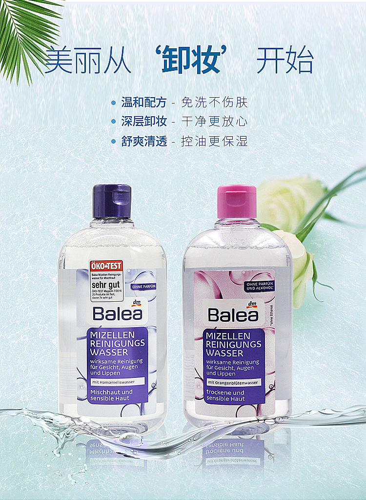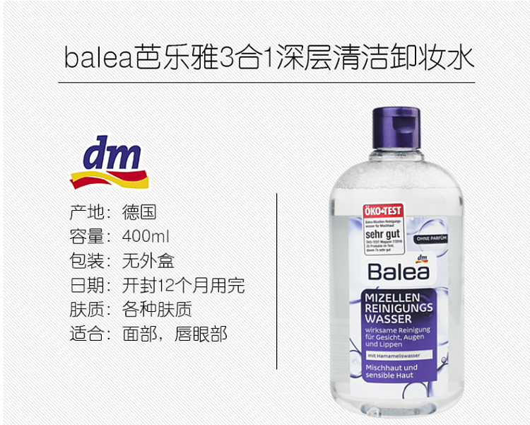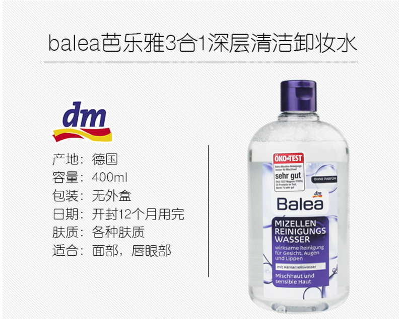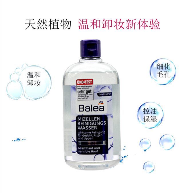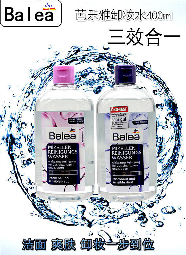 德国balea芭乐雅温和清洁卸妆水 洁面爽肤卸妆多效合一(紫盖)400ML