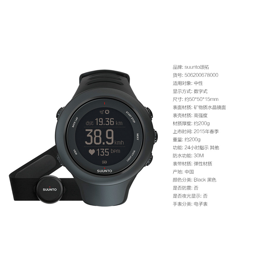 【男款】颂拓(SUUNTO)手表 AMBIT3 HR 拓野3户外运动石英心率动感黑SS020678000