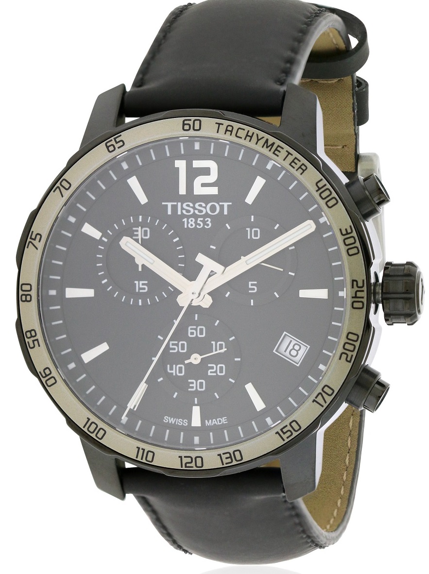 Tissot 时捷系列 黑色表盘真皮表带男士防水石英表 T0954173605702