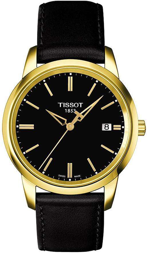Tissot Classic Dream 系列 黑色表盘真皮表带男士防水石英表 T0334103605101