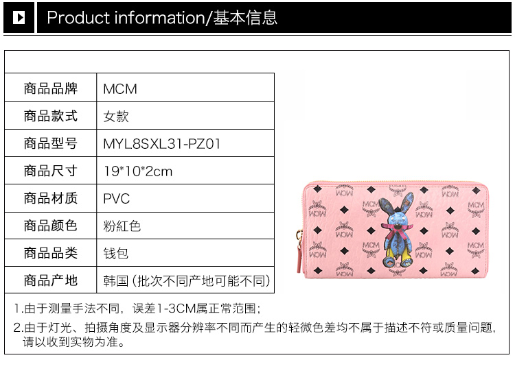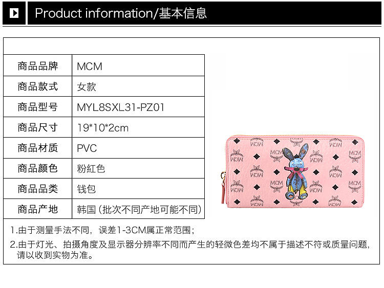 【女款】 MCM 女士PVC小兔子图案印花长款拉链多卡位钱包 MYL8SXL31-PZ01