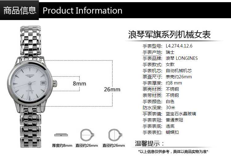 【女表】浪琴(Longines)手表 军旗系列机械情侣表L4.274.4.12.6