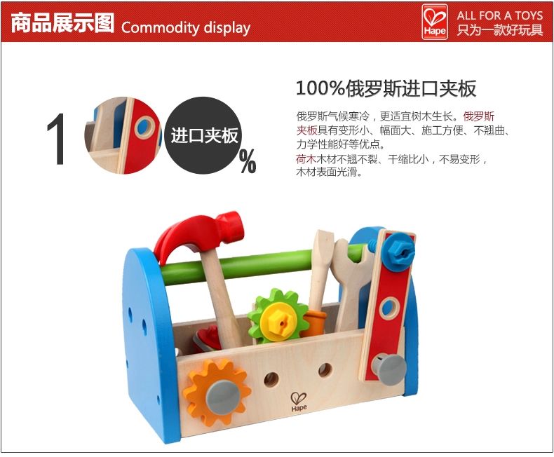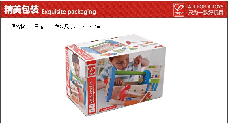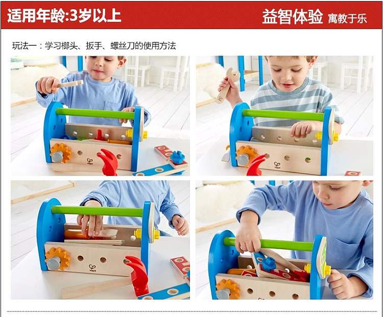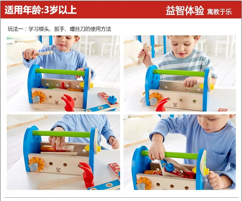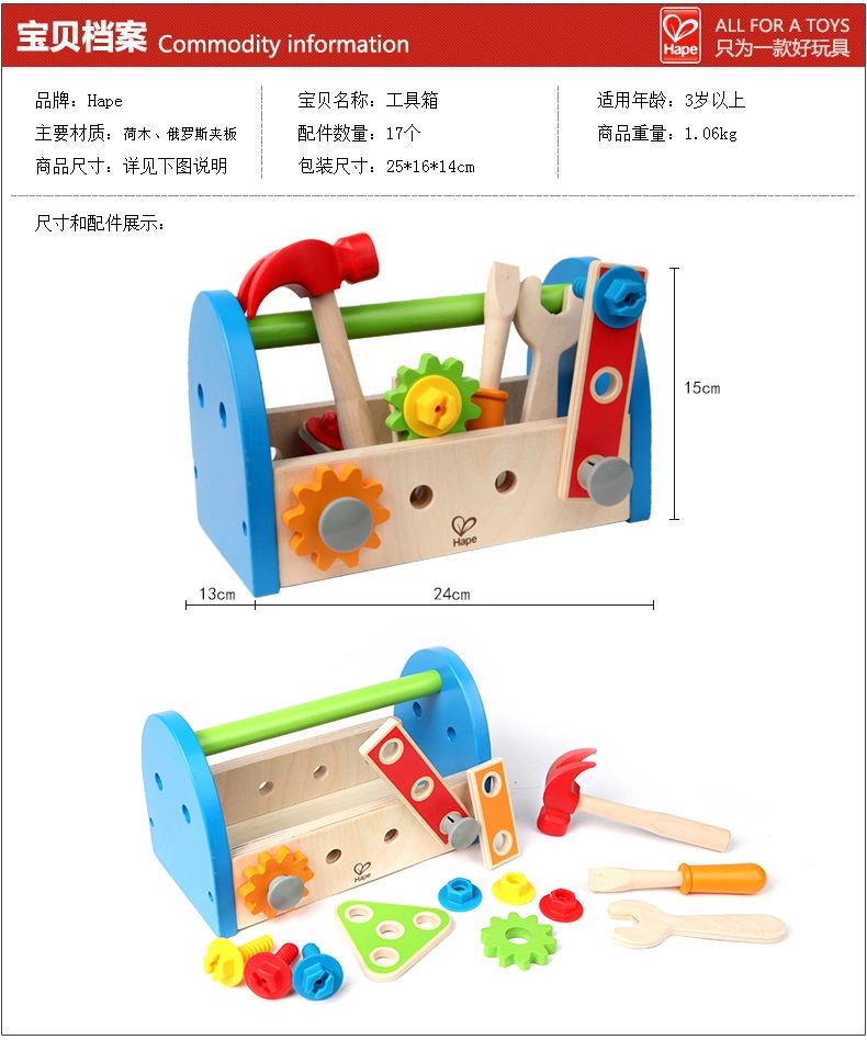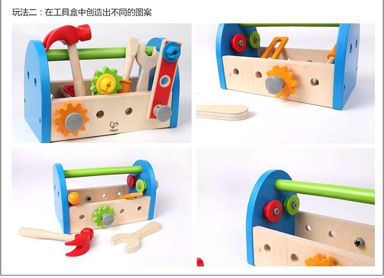 德国(Hape)儿童拼装工具盒仿真玩具 宝宝启蒙早教益智训练 辩色辩形动手逻辑训练