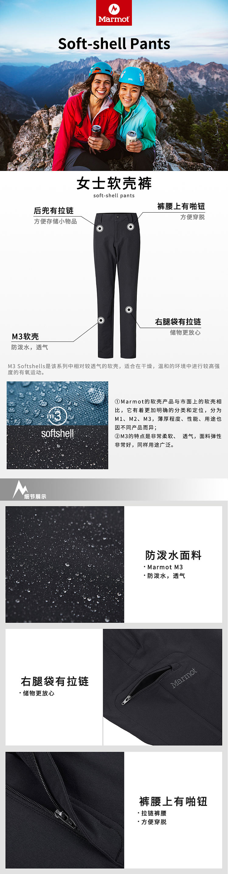 【女款】MARMOT 女款 软壳裤 M3 运动户外长裤 85330 曜石黑