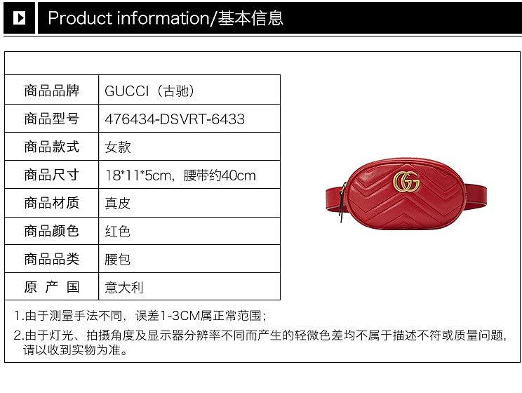 【女款】 【袁姗姗同款】GUCCI 古驰 红色皮革女士腰包 476434-DSVRT-6433