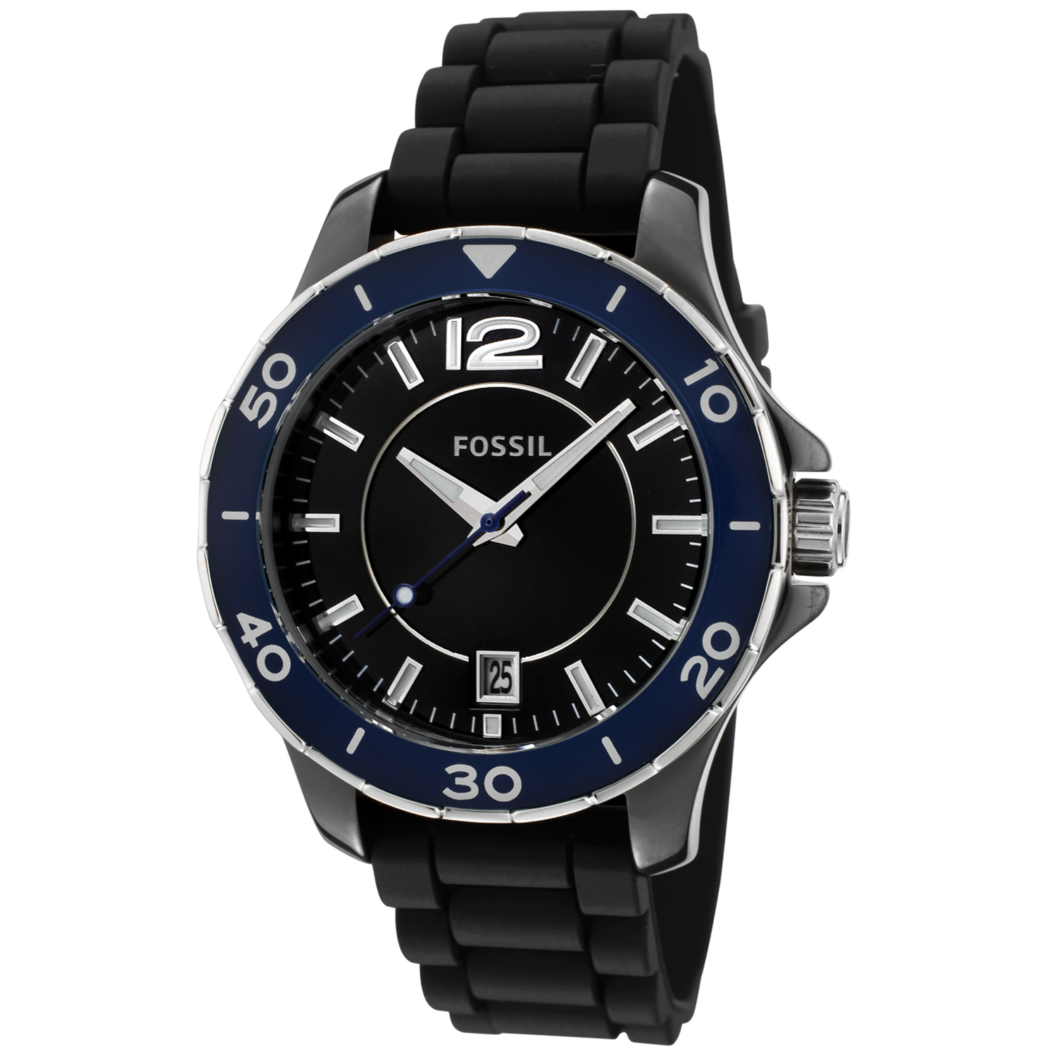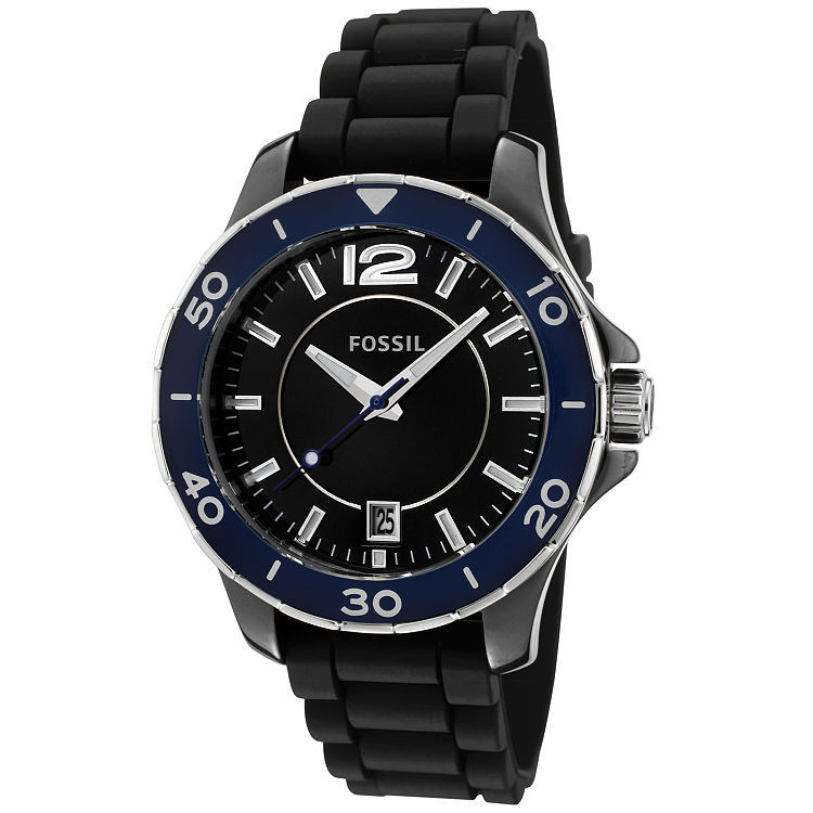 Fossil Classic 黑色表盘硅胶表带防水石英女表 CE1036