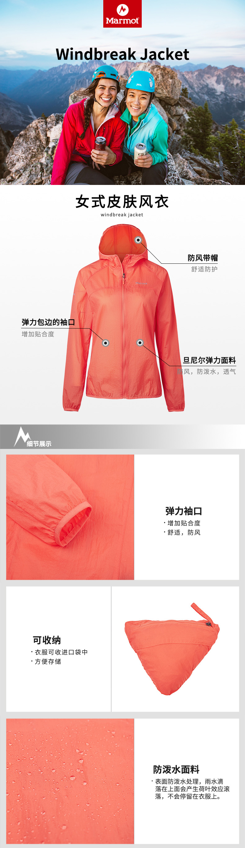 【女款】MARMOT 女款 皮肤衣 带帽皮肤衣 运动户外防晒外套 35950 白色