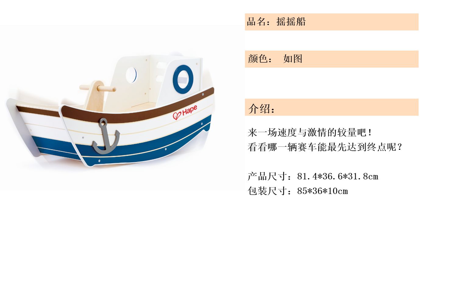 德国(Hape)木质摇摇船 趣味亲子玩具 E0102