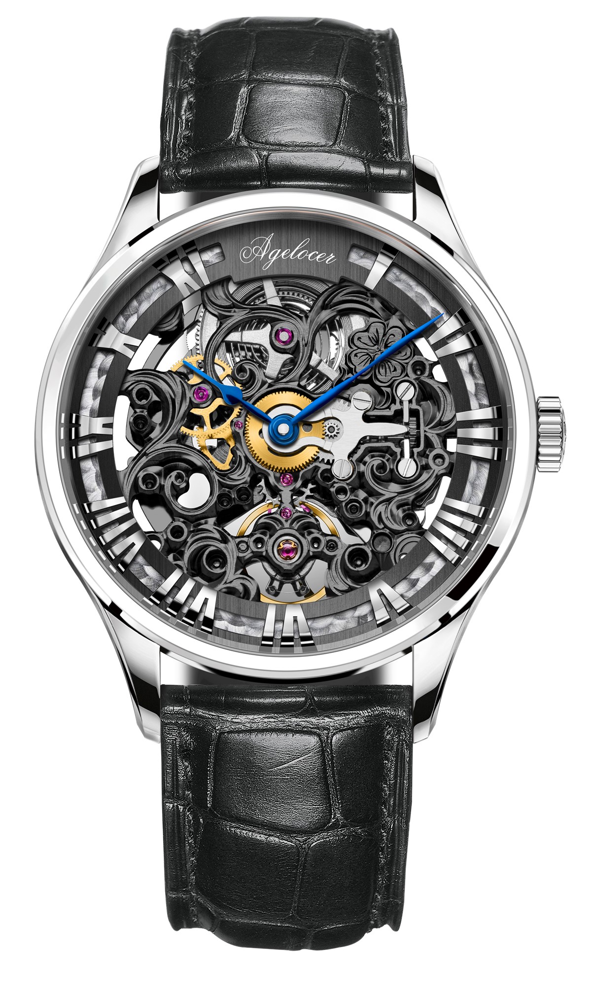 艾戈勒(agelocer)博世系列瑞士进口手表男镂空雕花全自动机械表 80小时长动能 潮男腕表 酷黑精钢皮带 80小时动能 5402A1