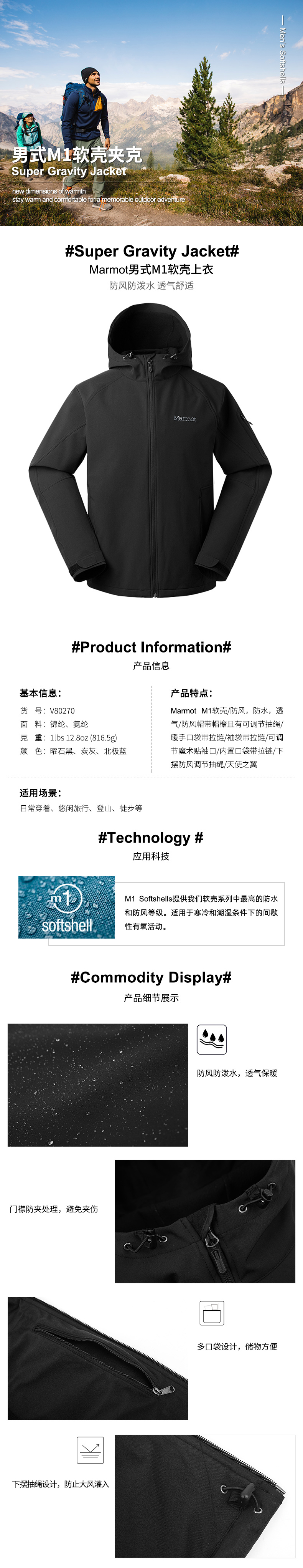 【男】MARMOT 男款 软壳上衣 M1 80270 北极蓝