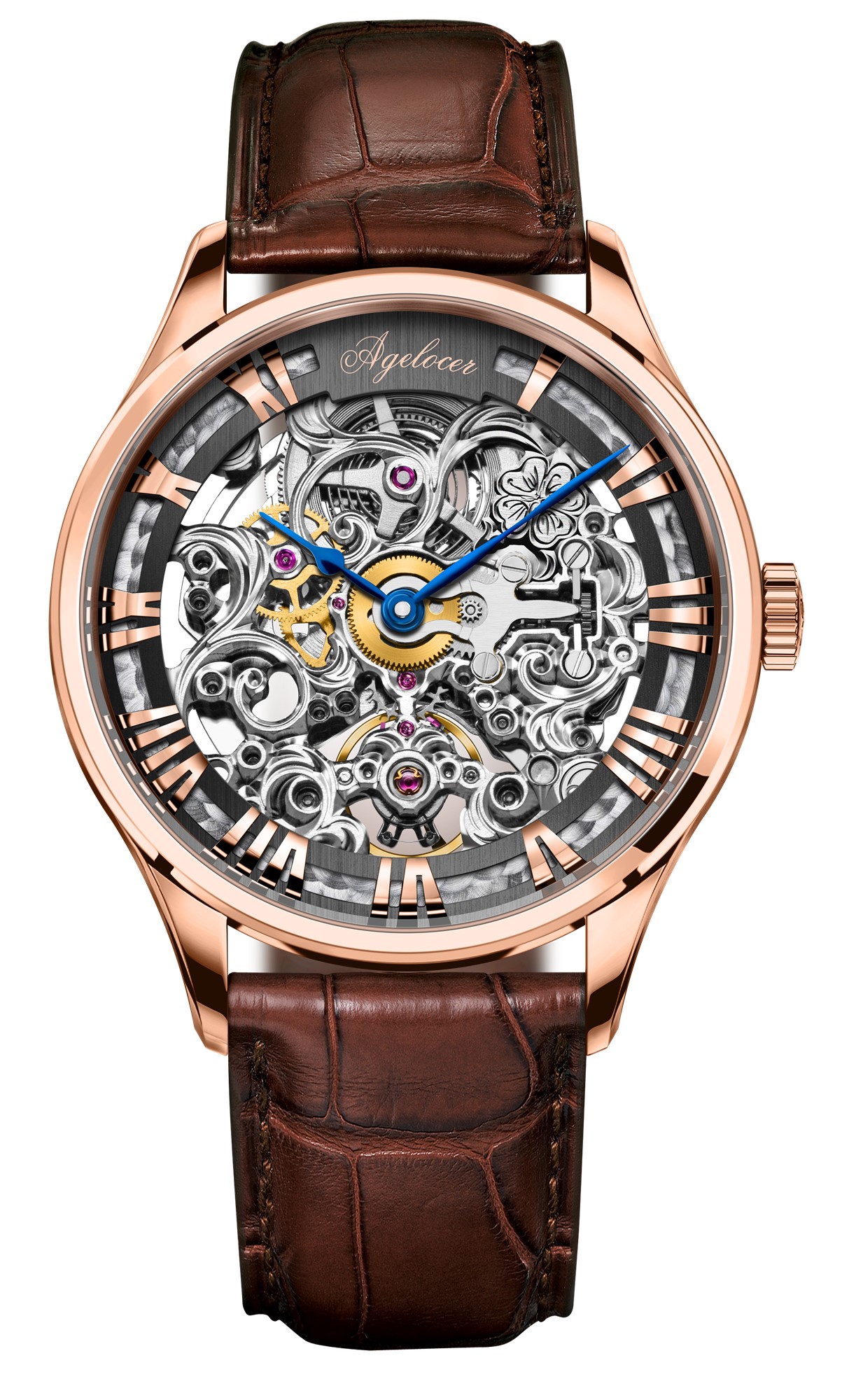 艾戈勒(agelocer)博世系列瑞士进口手表男镂空雕花全自动机械表 80小时长动能 潮男腕表 玫瑰金棕皮带 80小时动能 5401D2