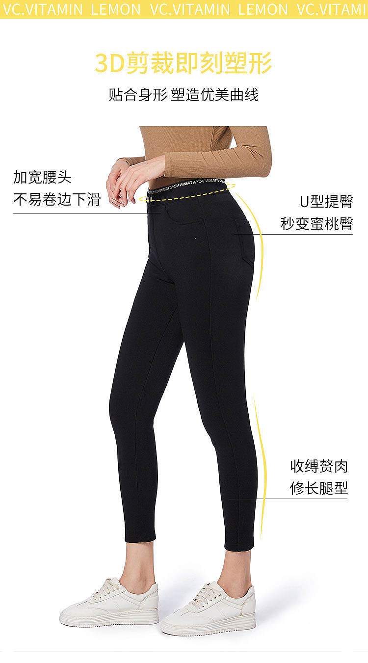 【女款】 柠檬VC润肤美肌冬季保暖打底裤女加绒加厚外穿字母小黑裤