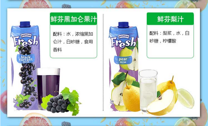 保加利亚 鲜芬果汁饮料 1L*2 黑加仑+梨汁