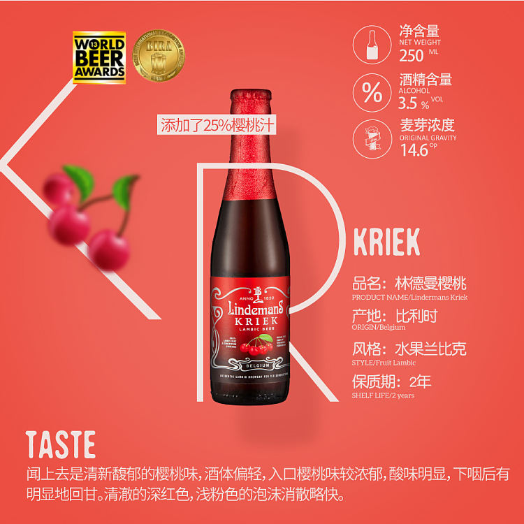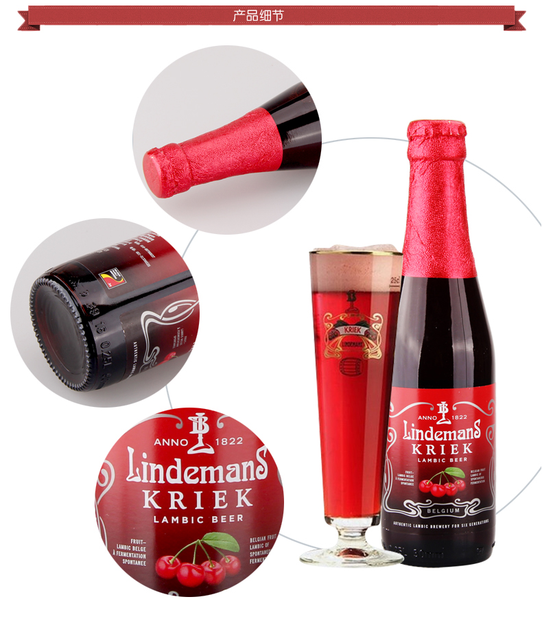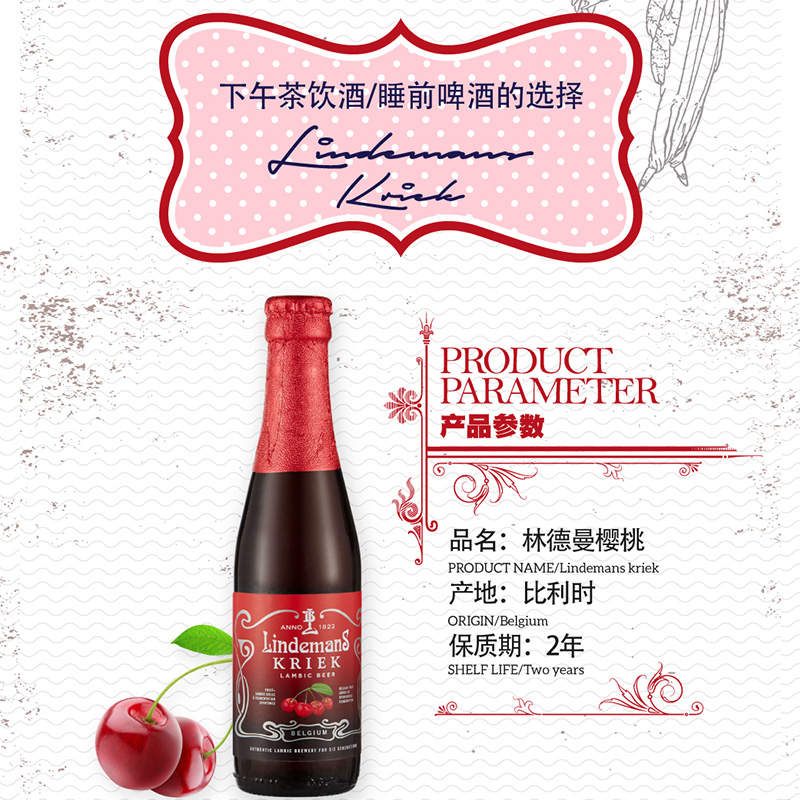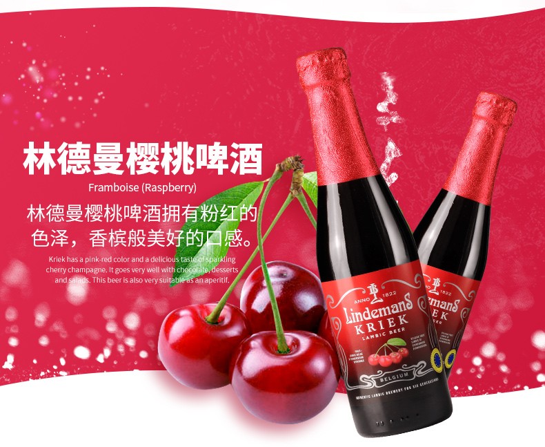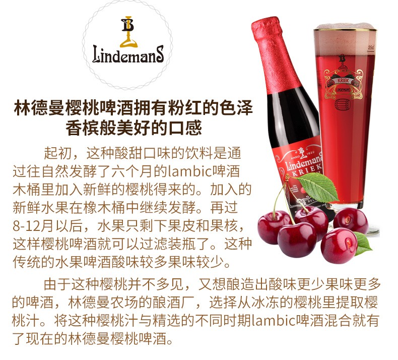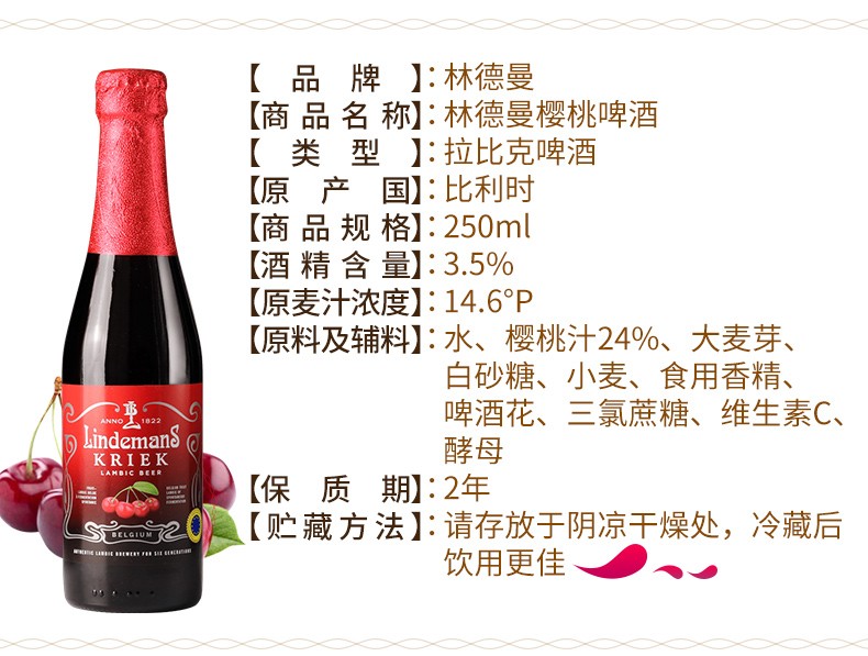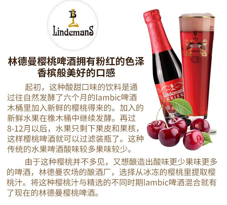 比利时原装林德曼樱桃味啤酒 250ml*3瓶