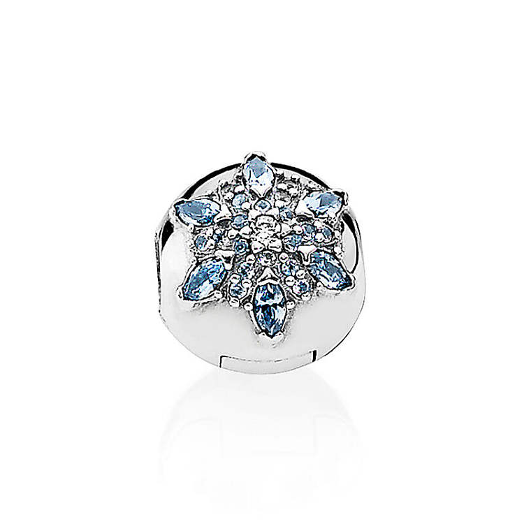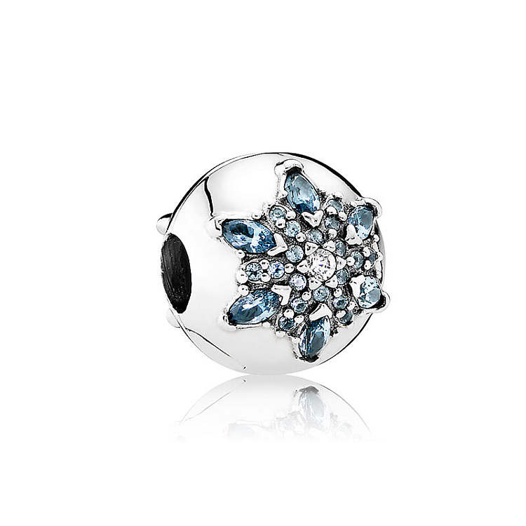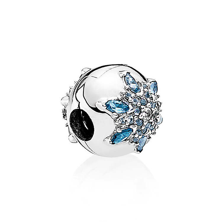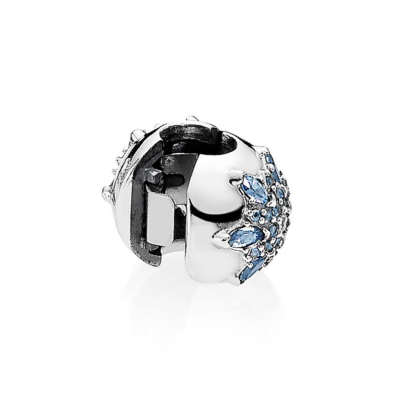 PANDORA潘多拉 冰蓝色晶莹雪花925银混合石材固定夹791997NMB