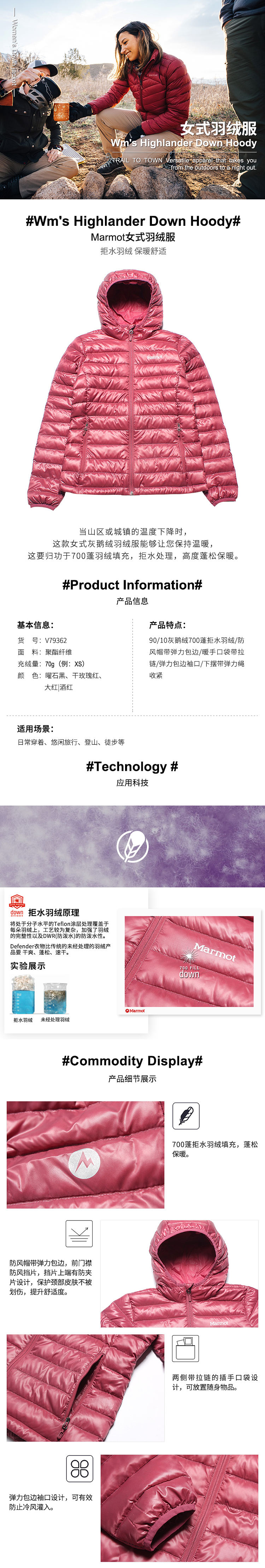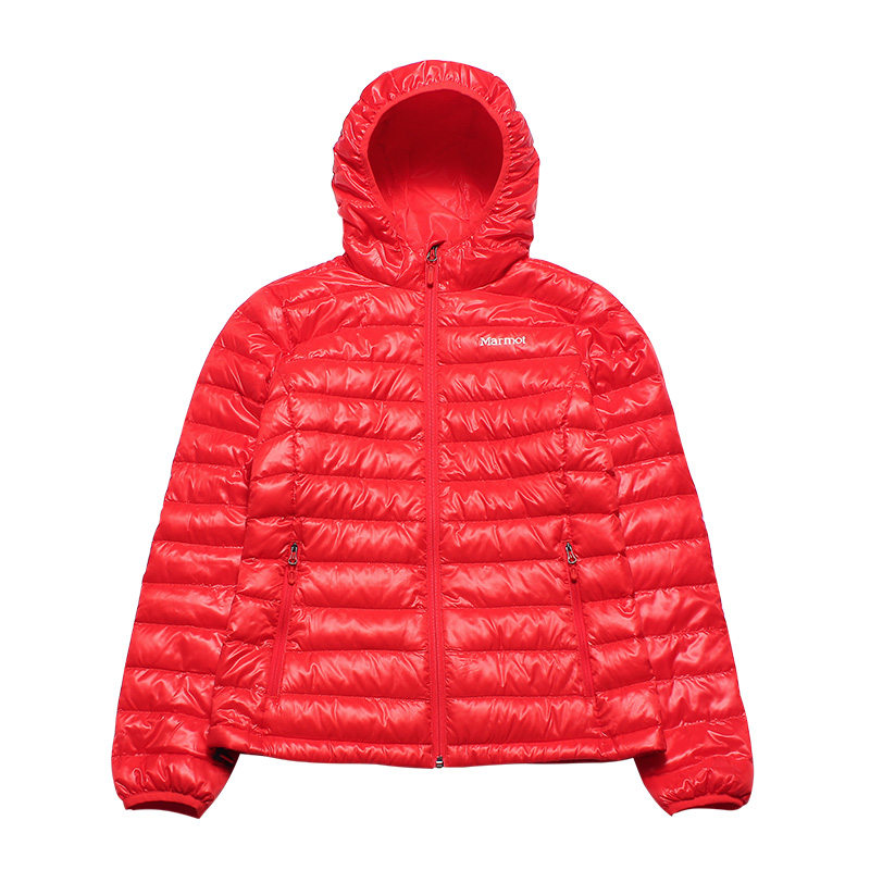 【女款】MARMOT 女款羽绒服 轻薄短带帽鹅绒700蓬 79362 700 大红|酒红