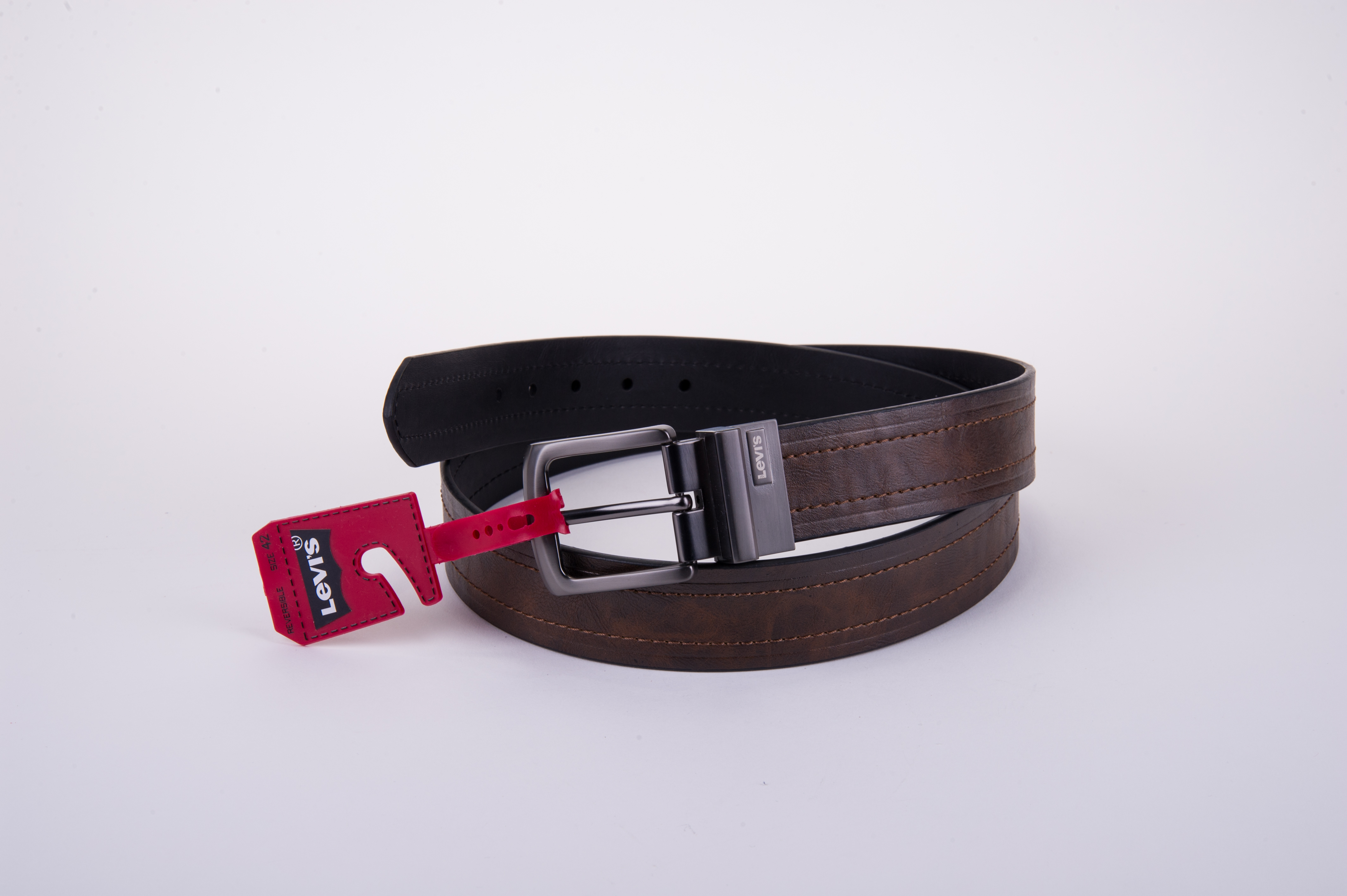 levi's男士复古做旧款商务黑棕色双面真皮腰带 11LV2223-BROWN-BLACK
