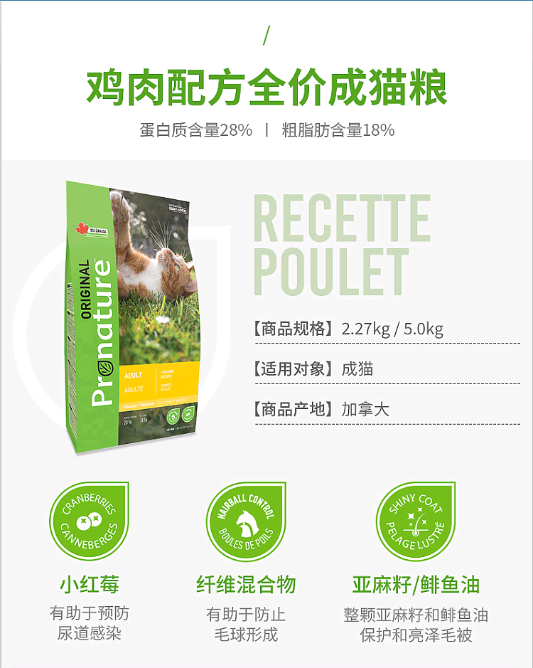 加拿大枫趣奥瑞鸡肉配方全价成猫粮5kg(鸡肉燕麦)