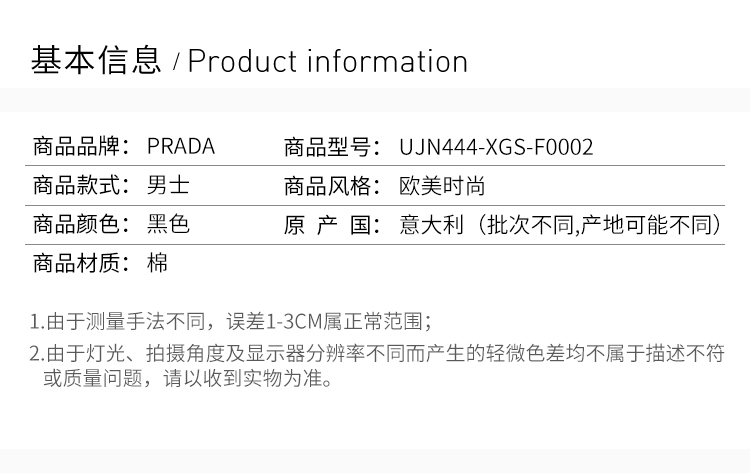 【男款】 Prada 普拉达 男士黑色短袖POLO衫 UJN444-XGS-F0002