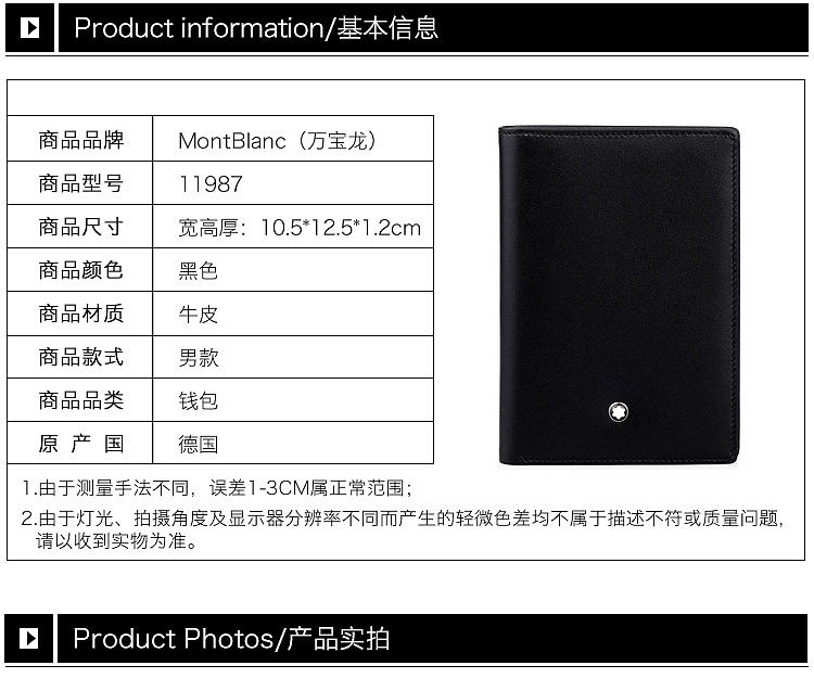 【男款】 Mont Blanc 万宝龙 男士大班系列4个信用卡袋钱包钱夹 11987