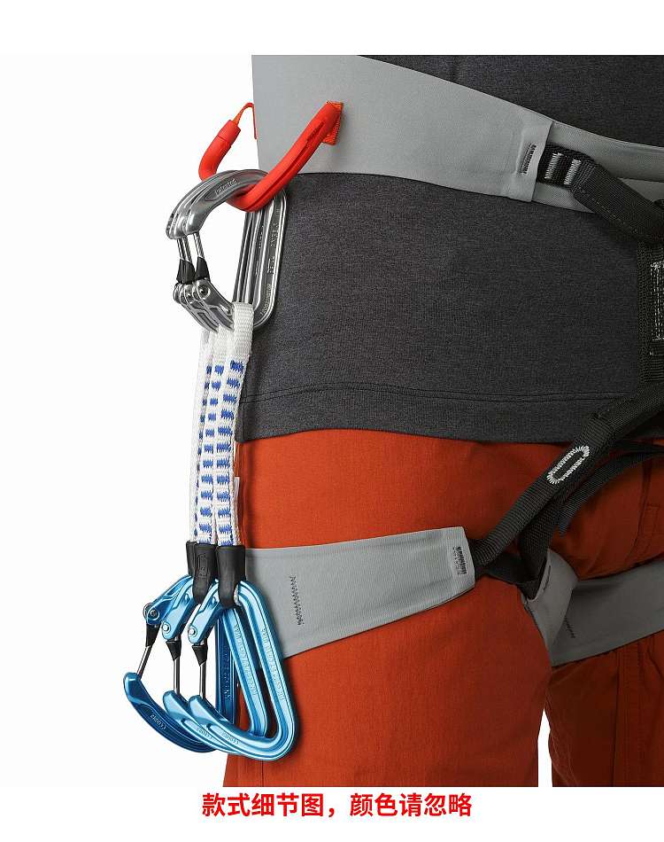 SL-340安全带↵专为运动攀岩而设计,这款SL-340安全、灵活、活动自如。耐磨的Burly™ Double Weave面料不吸汗而速干,感觉柔软;腰带结构经改良,边缘柔软,对身体的压力更少,穿着更舒适。精心设计精简到最基本性能,重量仅为340g (12 oz),是Arc'teryx 最轻量便携的安全带。↵经编强度技术(WARP STRENGTH TECHNOLOGY™)↵经编强度技术(WARP STRENGTH TECHNOLOGY™)的优点:传统安全带把重量集结在中心单条狭窄的织带或捆绑的边缘上,这些结构集中压力,感觉不适。WST™有别于传统的安全带,把重量均匀分布在整条安全带。经编强度技术(WARP STRENGTH TECHNOLOGY™)承托身体,重量在各处均匀地分布。这种结构支撑性非常好,新一代安全带有前所未有的舒适感和实用性。安全带的腰带和腿环带有薄加固设计,帮助重量更均匀地分布;安全带的边缘经过软化,穿脱更舒适。这些优点使WST™ 安全带耐磨、舒适柔软而轻薄。