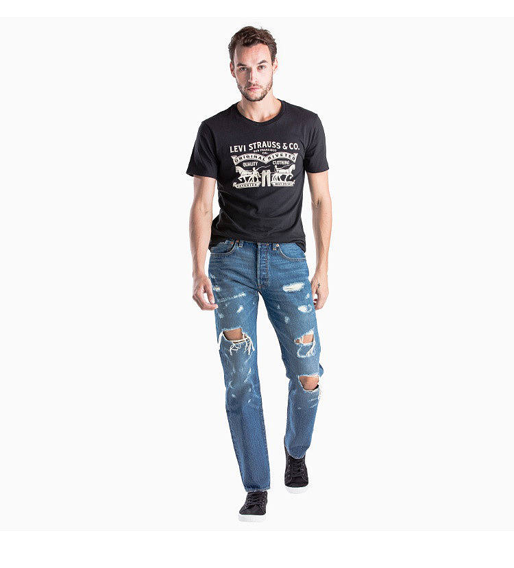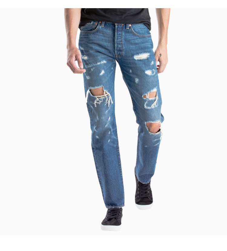 【男款】 李维斯男士潮流501经典直筒破洞牛仔裤