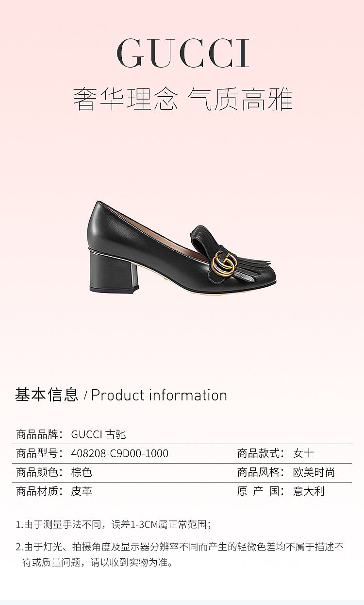 【女款】 GUCCI 古驰 黑色皮革女士高跟鞋 408208-C9D00-1000