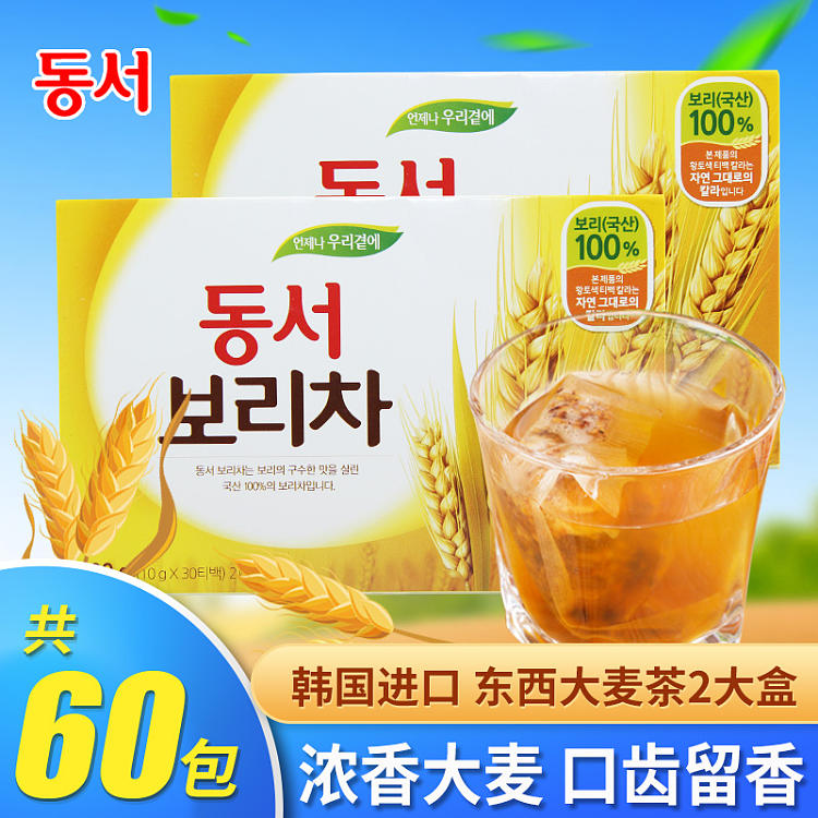 韩国进口原味谷物烘焙大麦茶袋泡茶 2盒60袋