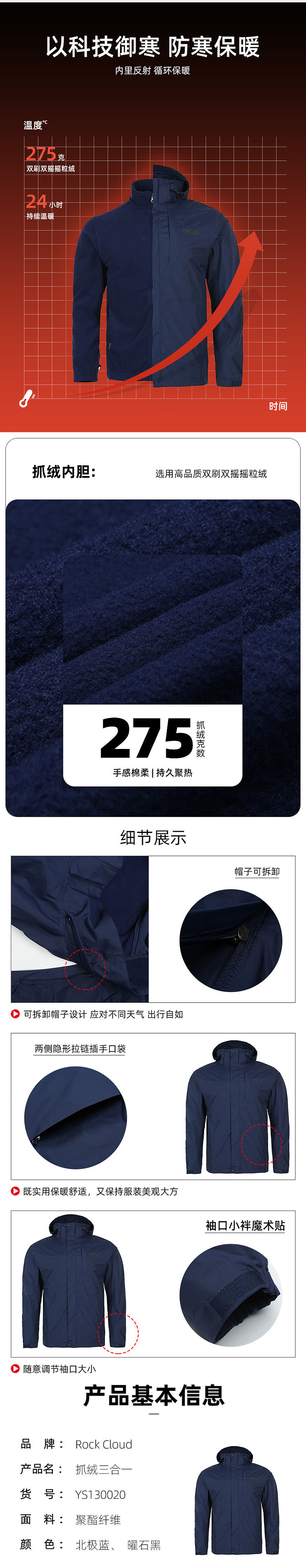 【男款】 ROCK CLOUD 男款三合一 抓绒三合一 130020