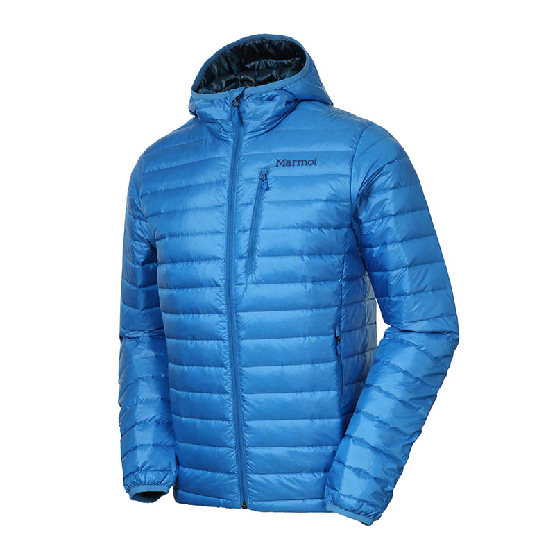 【男款】MARMOT 男款羽绒服 轻薄短带帽鹅绒800蓬 74060 清澈蓝