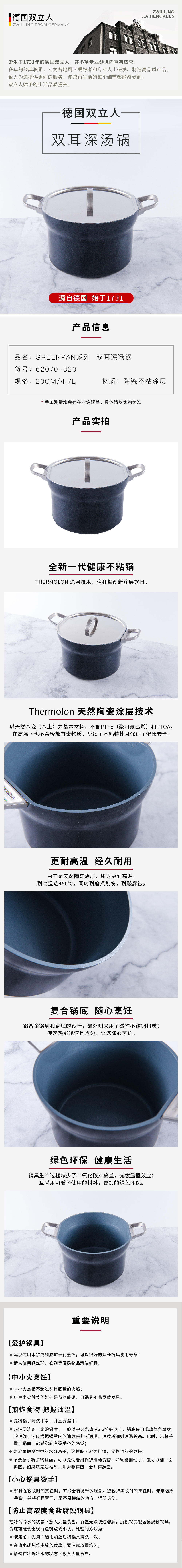 Greenpan双耳深汤锅 深烧锅 天然陶瓷涂层 20cm/4.7LGreenpan20cm深汤锅
