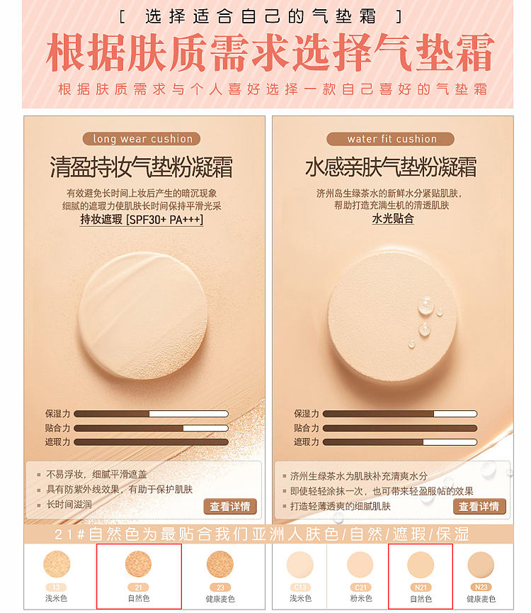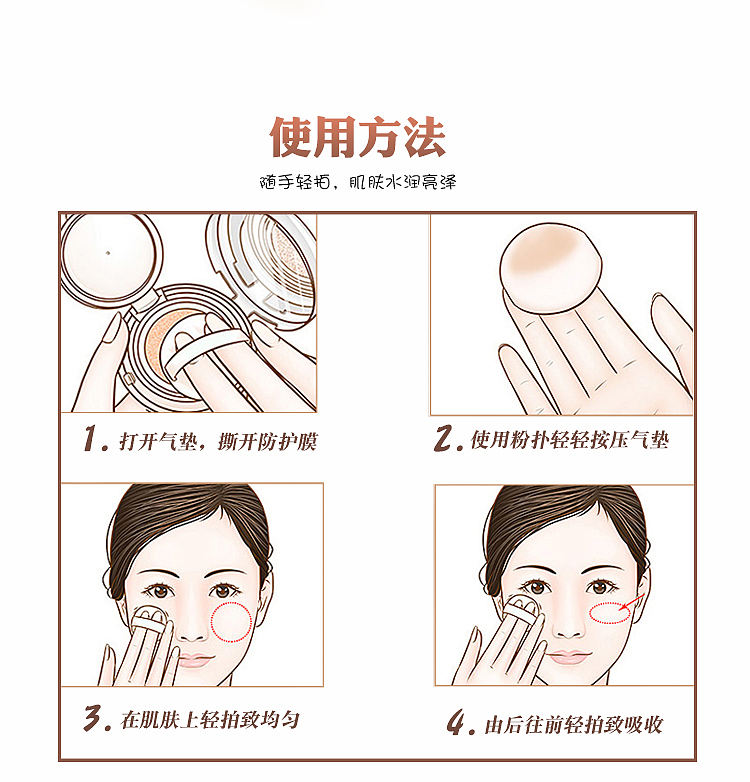 帮助在闷热潮湿的天气不易脱妆,有效抗汗抗油!清爽不黏腻的妆感,自然遮盖毛孔,防止暗沉现象产生,打造发光的肌肤!韩剧女主推荐产品!